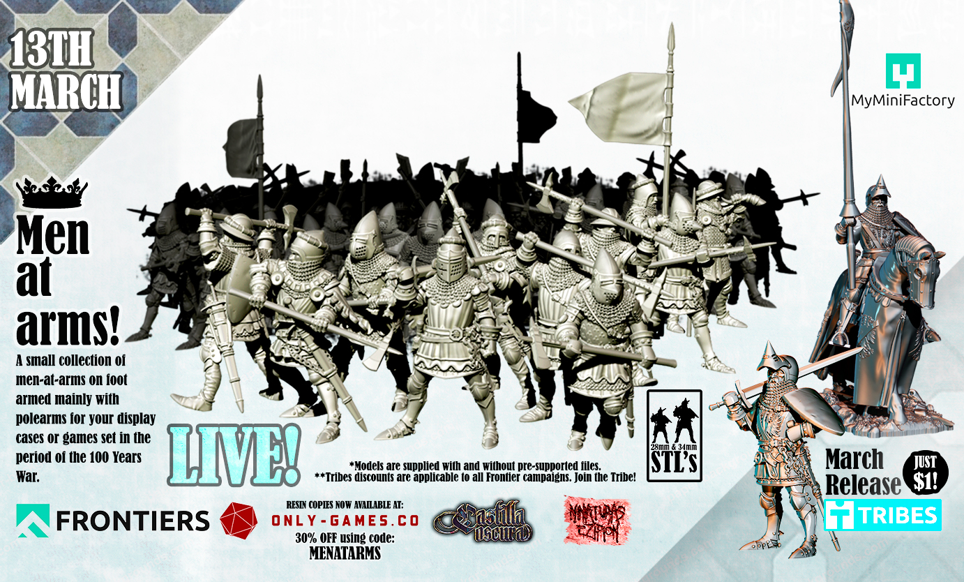 Miniatures for your historical and medieval fantasy games directly from the printer to your home.